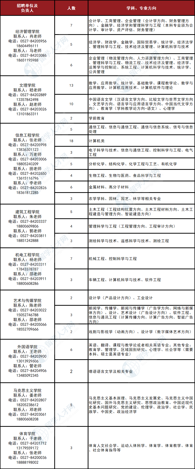 联系人:吴老师、赵老师或与人才需求信息表中相关学院工作人员联系。